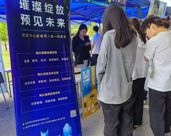 近日,南京海比信息技术有限公司(IHAIBI)正式拉开2024年春季校园招聘的序幕,积极参与了江苏省2024年百日冲刺促就业暨江苏经贸职业技术学院举办的“青春壮志千万岗·筑梦职涯新征程”春季校园招聘会。此次招聘活动旨在吸引更多优秀毕业生加入,共同推动音视频技术在各个领域的创新应用。