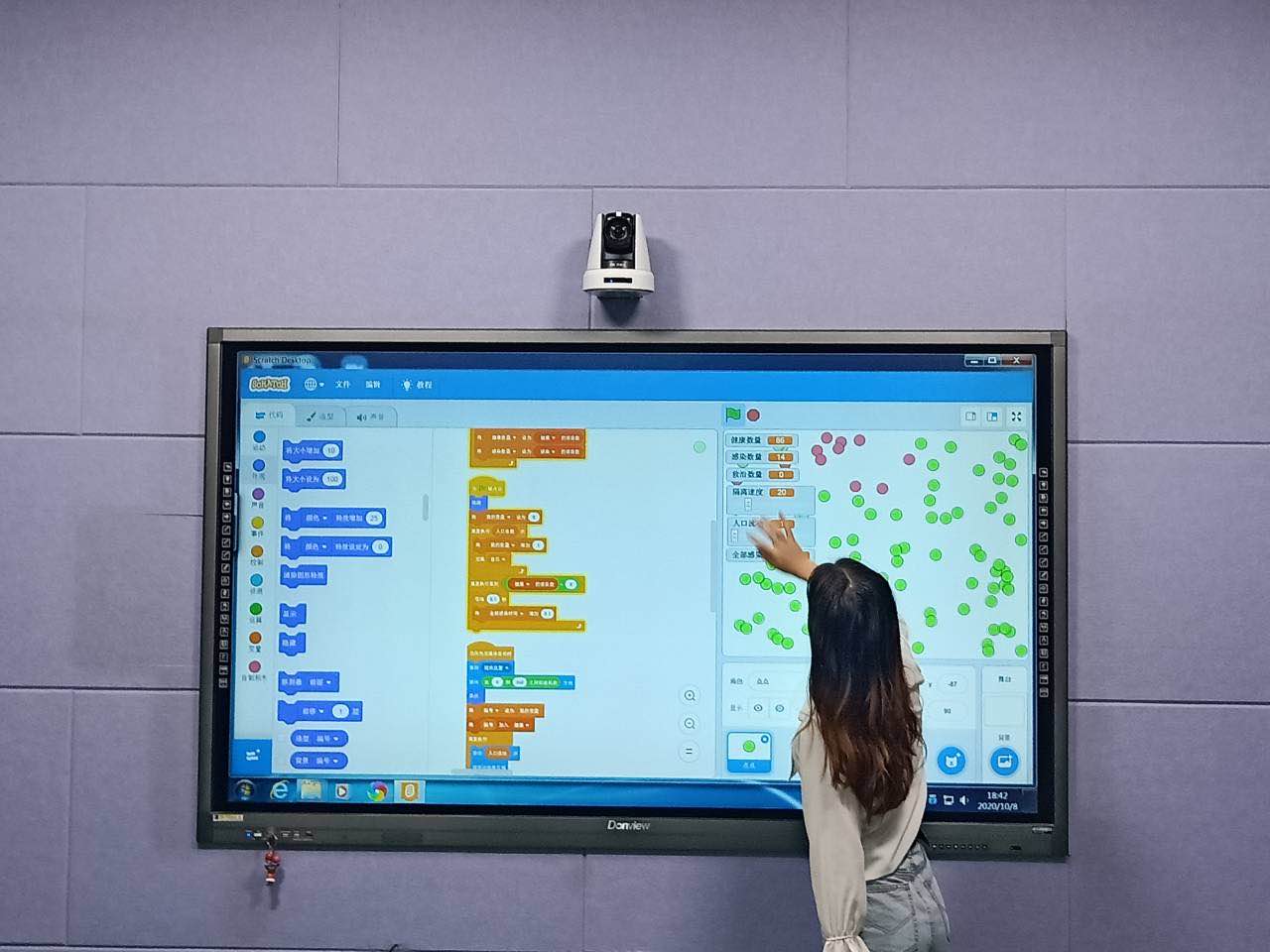 授课教师在各个可移动桌椅之间移动教学,听取学生发言,教学现场小组研讨。优化的学习场景可极大提升学习体验,教室的实时录播系统可以让教师们边上课边录制视频,一方面可以实现远程对教师课堂进行督导,另一方面又方便师生课后回顾课堂所学进程,将有效提升课堂质量。