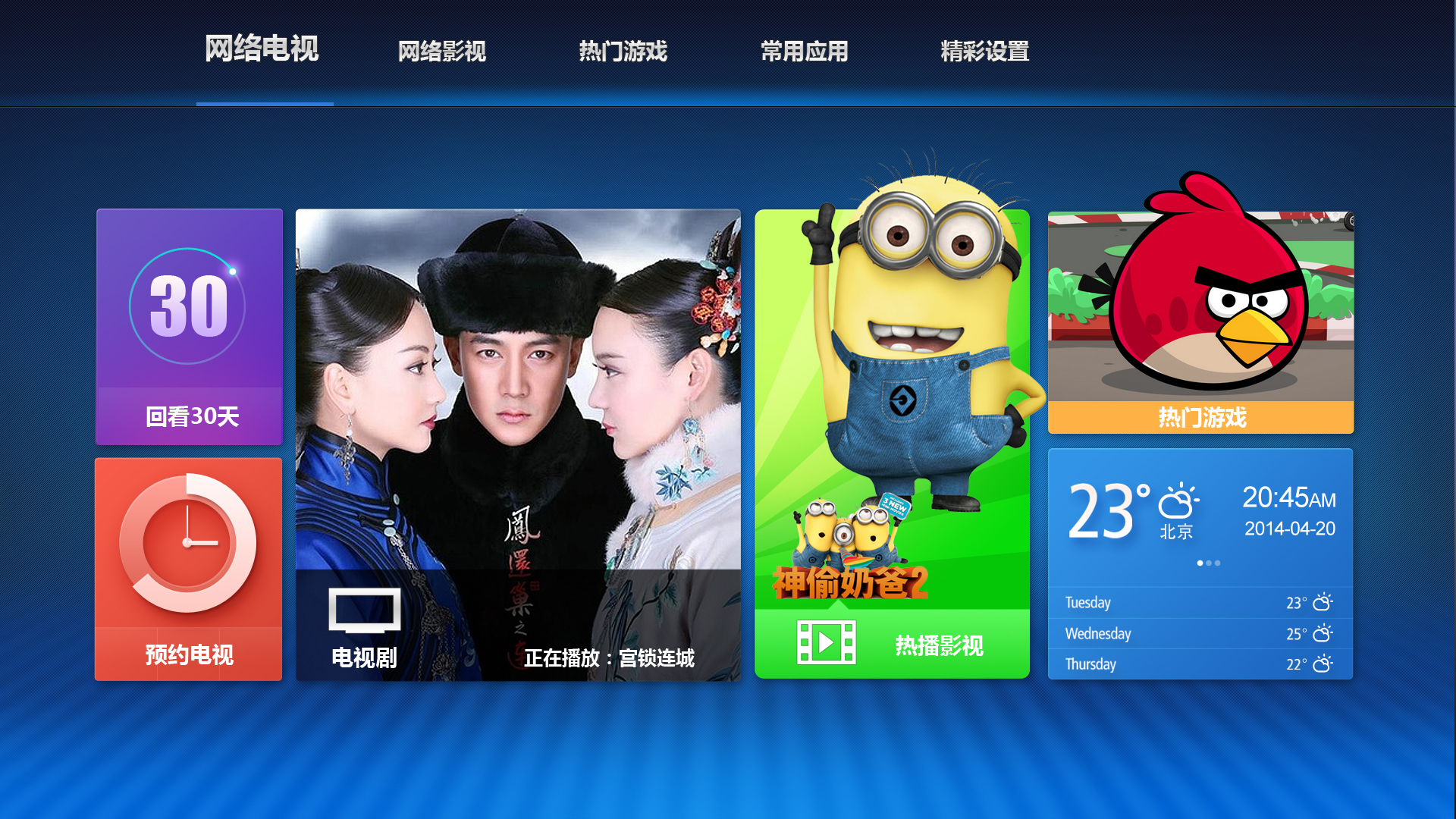 用户不仅可以观看到高清影视节目,还可以在观看电视直播节目的同时,随时按暂停或后退/快进键,也可以选择观看几天前的电视节目。这彻底颠覆了原有看电视的方式,给用户带来了全新的收视体验,也使得电视成为真正意义上的“我的电视”,摆脱了时间的束缚,顺应了现代人越来越快的生活节奏。